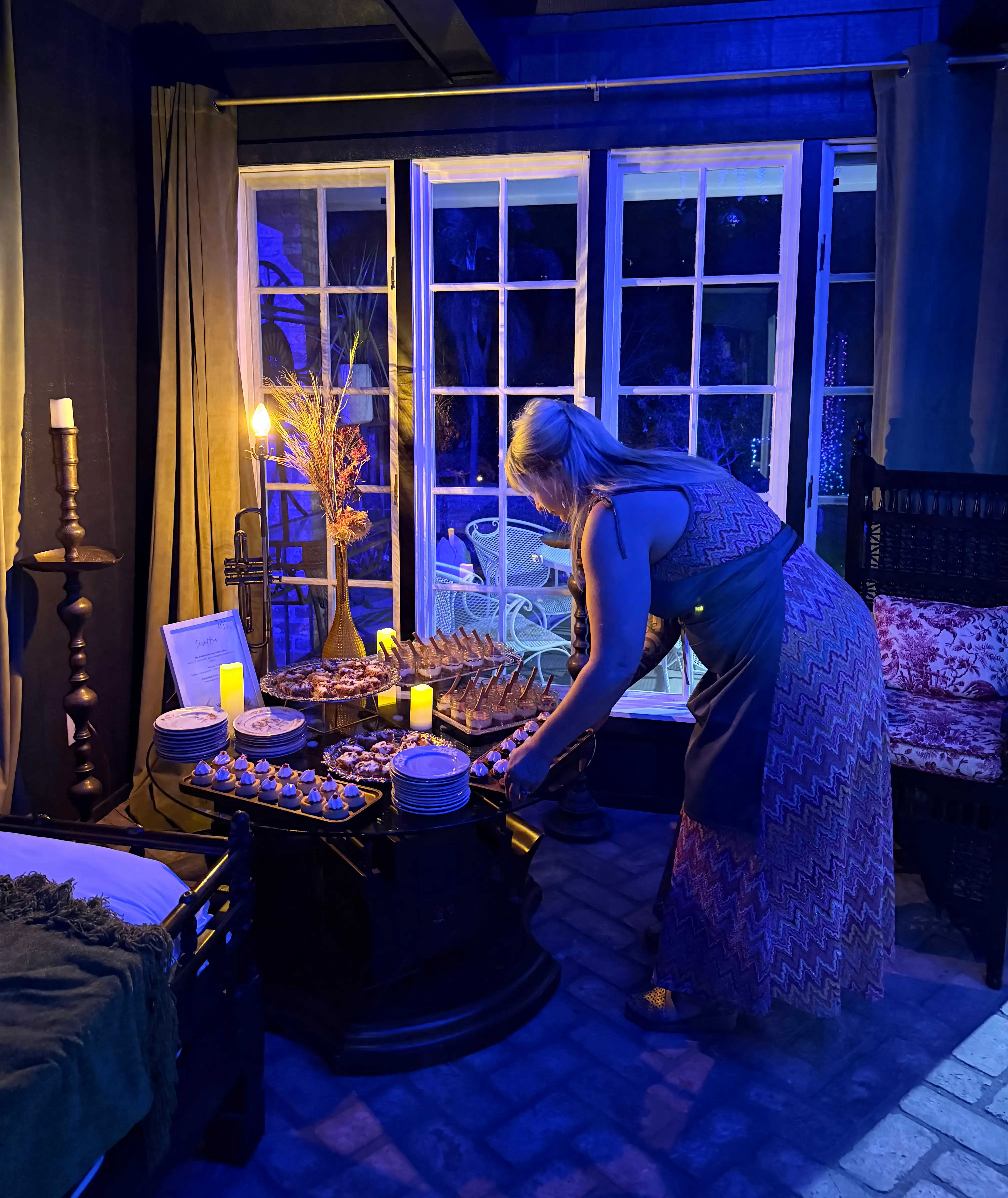 Inside the house, we created an intimate dessert display featuring a collection of small sweets guests could enjoy as the evening continued: