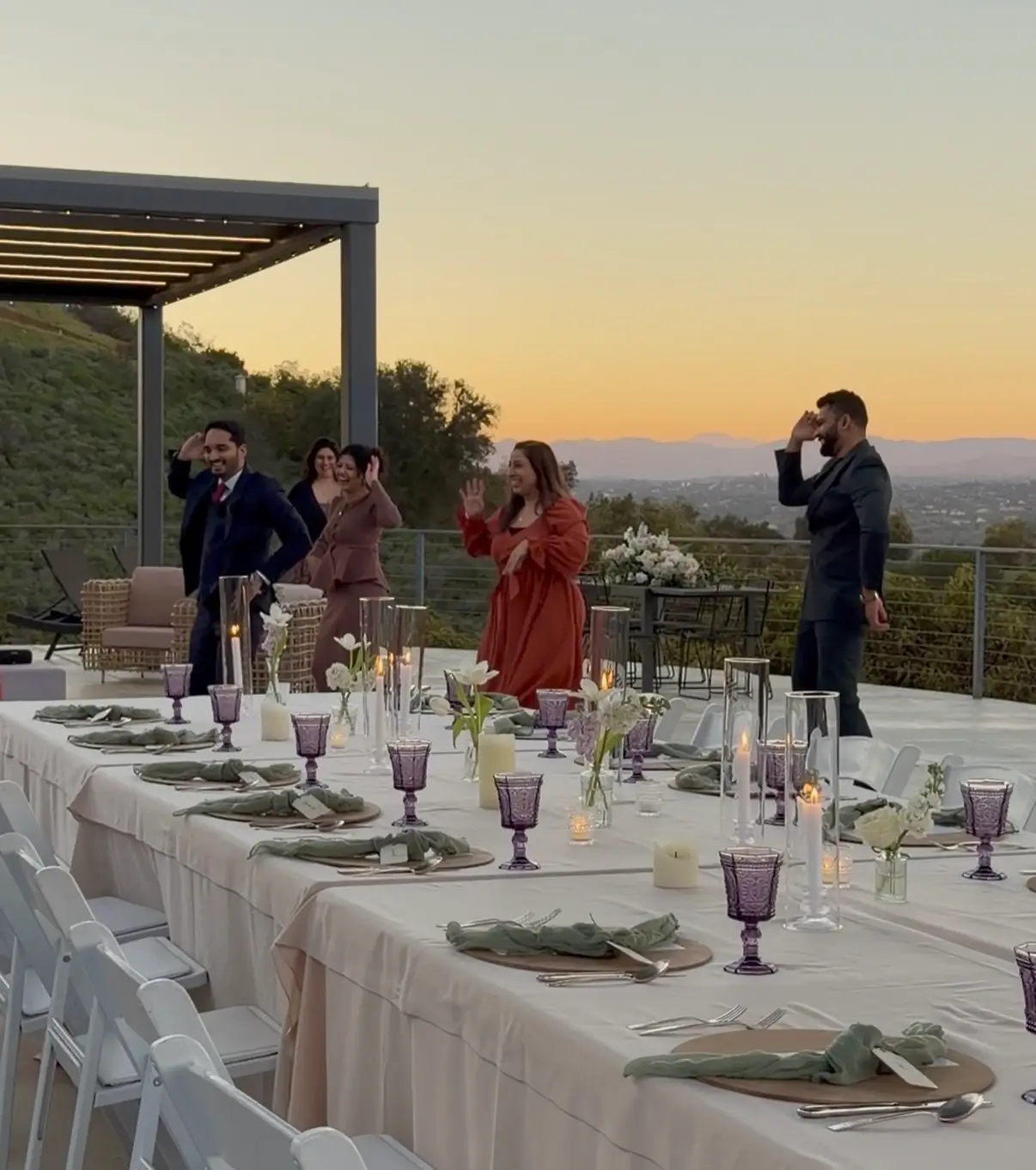 The evening began indoors where guests gathered in the living room to mingle over appetizers and drinks. Later, everyone moved to the gazebo for the moment Garvit asked Divya the question that brought everyone together.