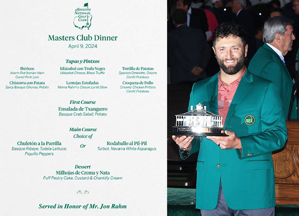 More recently, Jon Rahm’s dinner reflected his Spanish heritage, featuring tapas, Iberico ham, and Basque-inspired dishes—elevated, but still grounded in where he comes from.