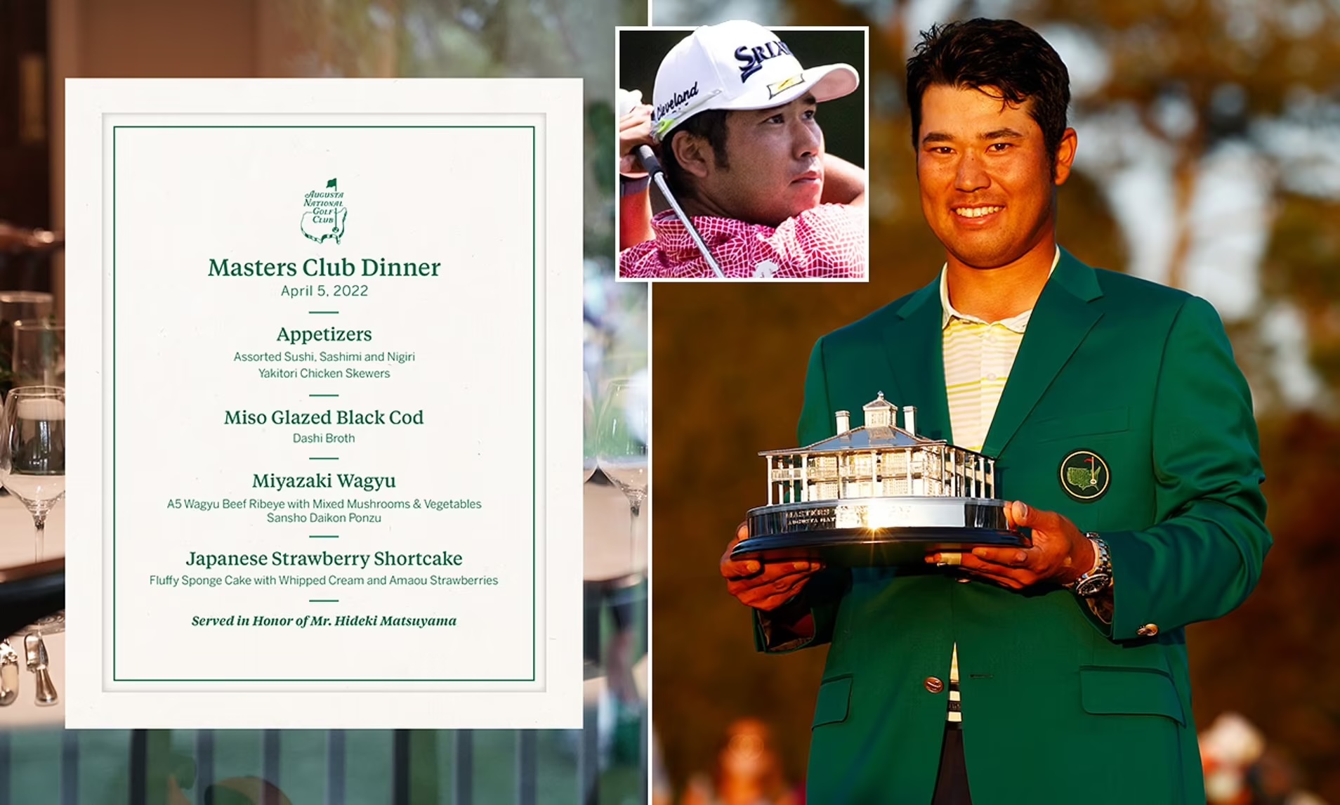 Or Hideki Matsuyama’s 2022 menu, which introduced traditional Japanese dishes like miso-glazed black cod, A5 wagyu, and assorted sushi—bringing a sense of cultural pride and heritage to Augusta.